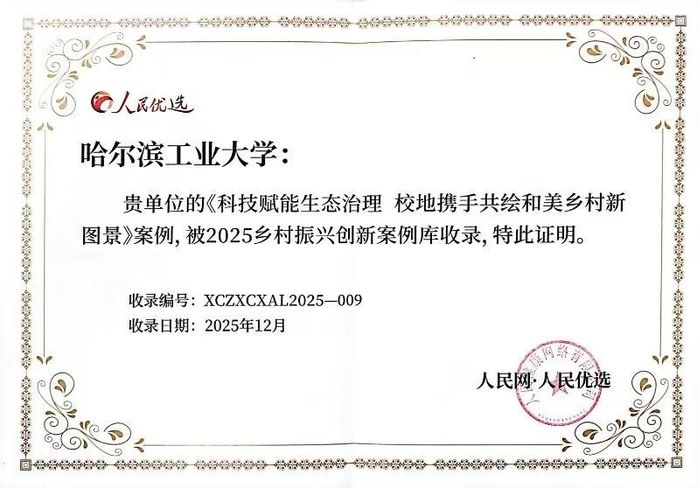 日前,由人民网主办的2025乡村振兴大会在北京召开。会上,2025乡村振兴创新案例库正式发布上线,哈工大成人在线 报送的《科技赋能生态治理 校地携手共绘和美乡村新图景》案例凭借其创新性、实效性和可推广性成功入选,成为高校助力乡村生态振兴的典型案例。